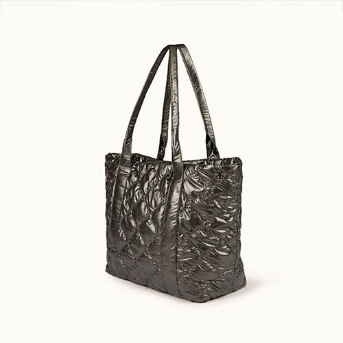 Bolso estilo shopper de la marca Munich. Fabricado en un nylon de tacto suave y efecto semi brillo. Efecto acolchado en color kaki. Asa bandolera adicional regulable y extraible. Cierre con cremallera y botones a presion en los laterales para darle dos estilos distintos al bolso. Interior con bolsillo con cremallera.