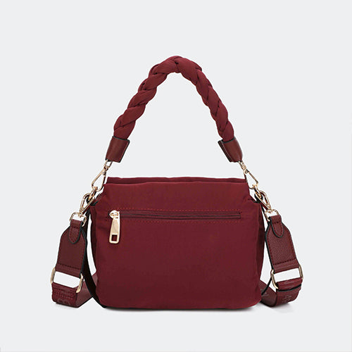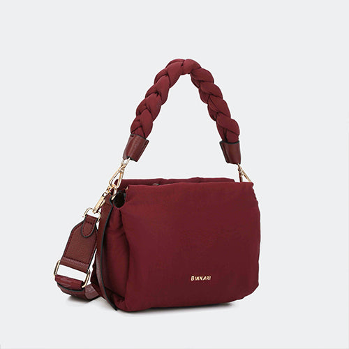 Bolso bandolera de la marca Binnari. Confeccionado en nylon y detalles en pu de alta calidad. Modelo en color burdeos. Cierre mediante cremallera. Incluye bolsillo interior con cremallera y bolsillo posterior con cremallera. Tiene 2 posiciones: bandolera y bolso de hombro gracias a su asa trenzada extraíble al tono. Bandolera ajustable y extraíble. Detalle de marca en la parte frontal.