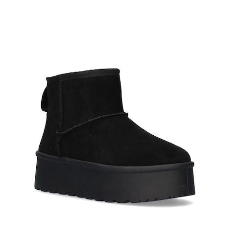 Botín de plataforma gruesa de la marca EXE. Fabricado en material textil color negro. Plantilla textil, interior de pelo suave y suela sintética.