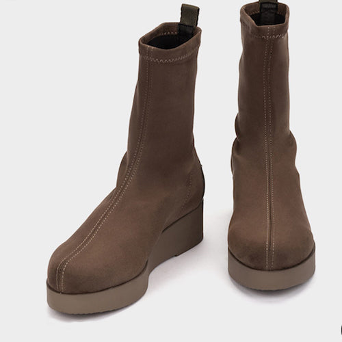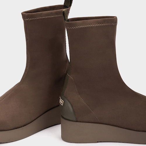 Botín estilo calcetín de la marca Weekend. Fabricado en tejido elástico en color kaki. Este modelo se adapta a tu pie como una segunda piel para brindar un ajuste impecable. Detalle de marca a contraste situada en la parte posterior.