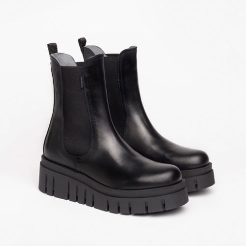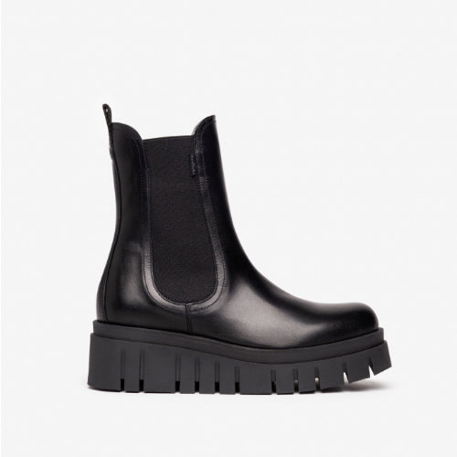 Botín estilo Chelsea de la marca NeroGiardini. Fabricado en piel color negro. Detalle de elásticos en los laterales del modelo al tono. Tirador en la parte posterior del modelo para un mejor calce. Suela de goma con volumen tipo track.