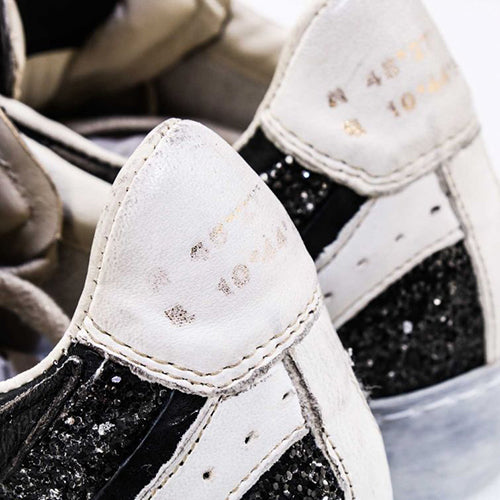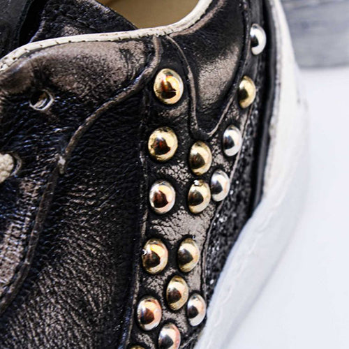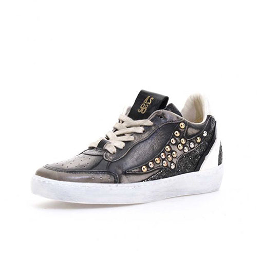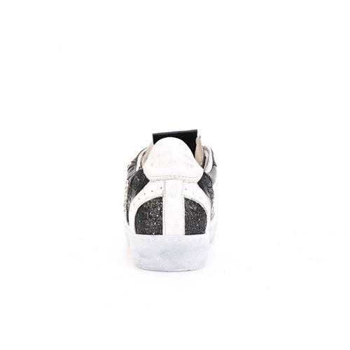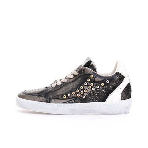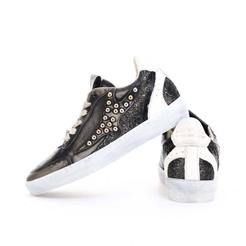Deportiva con cordones de la marca AS98. Fabricada en color gris con piezas de corte en glitter al tono . Diseño vintage que destaca por su icónica estrella lateral y la suela con efecto desgastado, realzando su estética atemporal. Detalle de tachas metálicas en el lateral exterior. Una mezcla perfecta de diseño retro y detalles contemporáneos para un aspecto auténtico lleno de personalidad. Marca en lengüeta. Modelo de plantilla extraíble.