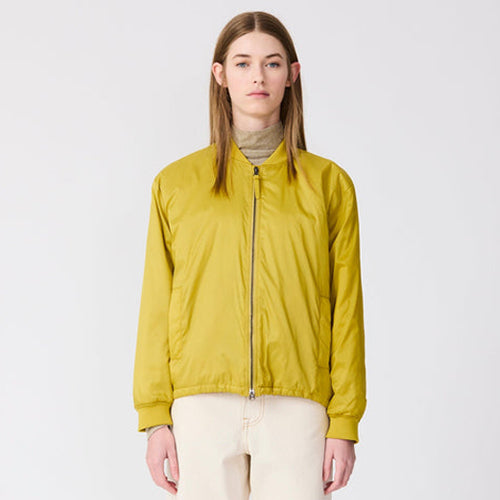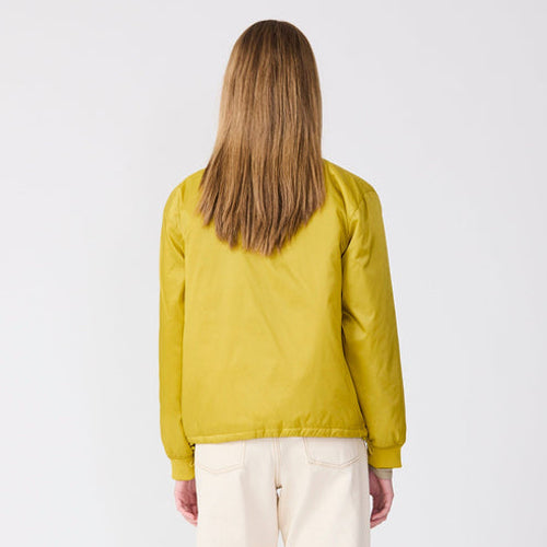 Chaqueta tipo Bomber de la marca TANTÄ en color mostaza. Confeccionada en 100% nylon repelente al agua es perfecta para combinar con otras prendas durante la temporada de entretiempo. Su acolchado ligero proporciona calidez sin exceso, mientras que los puños y el cuello de canalé, la cremallera metálica de doble cursor y los bolsillos de ribete refuerzan su estilo bomber clásico.