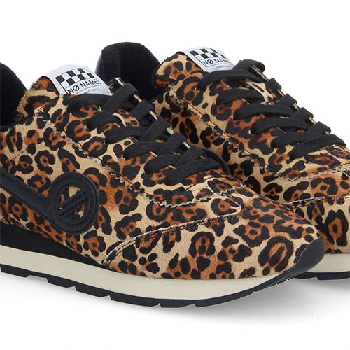 Deportiva con cordones de la marca NO NAME. Modelo City Run Jogger. Fabricada combinación de piel en color negro y pelo en estampado animal print. Detalle de anagrama en los laterales en color negro. Contrafuerte en color negro con marca al contraste. Forro 100% poliéster. Plantilla extraíble de algodón orgánico con certificación GOTS. Suela EVA + caucho, fina y ultra-cómoda que la convierten en un imprescindible para pasear por la ciudad con estilo.