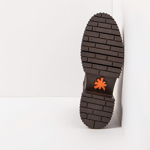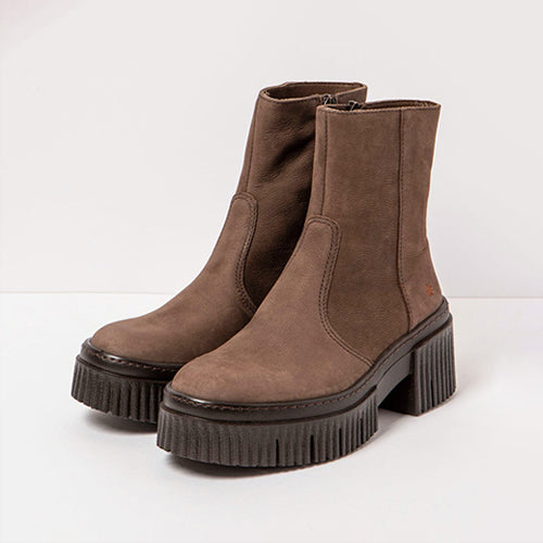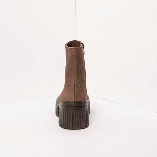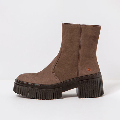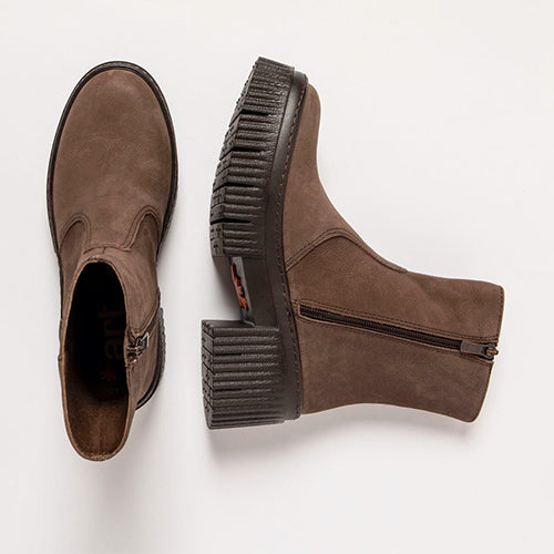 Botín de tacón y plataforma de la marca art. Fabricado en piel nobuk en color marrón. Cierre mediante cremallera situada en la parte lateral interior. Modelo de puntera redondeada. Piso dentado. Suela ultraligera, flexible y cómoda gracias a MOVE ME y SOFTLIGHT. Plantilla extraíble de microfibras.