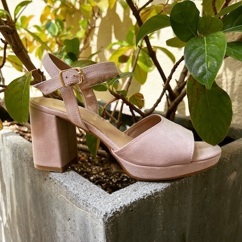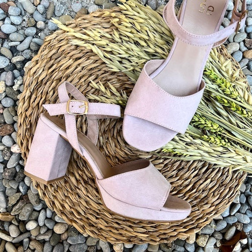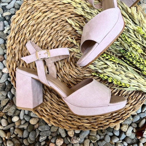 Sandalia con plataforma y tacón medio de la marca Itse. Diseño en color nude con tira ancha en su parte delantera. Cierre mediante hebilla ajustable a la altura del tobillo. Plataforma y tacón amplio forrado al tono.