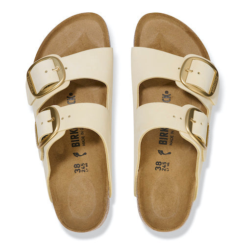 Sandalia de la marca Birkenstock en color beige hielo. El modelo Arizona es un auténtico clásico que con sus dos correas se convierte en un diseño atemporal. Maxi hebilla ajustable metálica en color dorado. Material superior compuesto por piel nobuk de alta calidad, aterciopelada y suave, de aspecto natural.