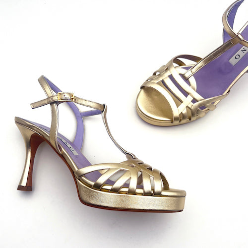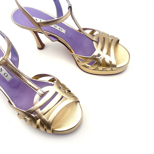 Sandalia de plataforma y tacón alto de la marca Albano. Modelo de tiras en color platino. Cierre mediante hebilla a la altura del tobillo. Interior de piel y suela de cuero.