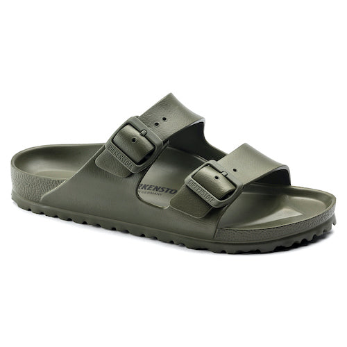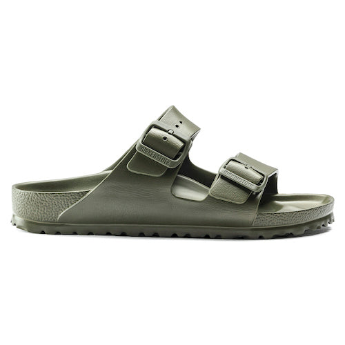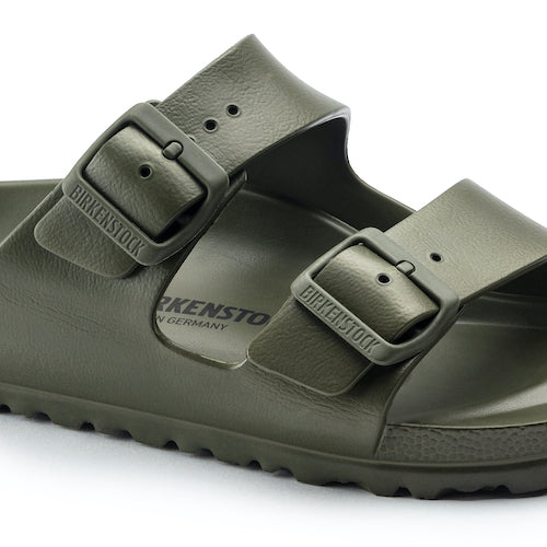Sandalia de la marca Birkenstock en color kaki. Doble correa con hebillas para ajuste individual. El modelo Arizona de Birkenstock es un auténtico clásico. Inspirado en la sandalia de corcho, este modelo está hecho de EVA. El material plástico EVA es de alta calidad, no tiene olor ni sustancias contaminantes y reúne muchas características positivas: es muy ligero, de alta elasticidad, resistente al agua, es respetuoso con la piel y ofrece el confort habitual de la marca.