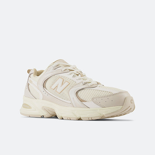 Deportiva New Balance 530. Fabricada en malla y material efecto piel en beige. Modelo retro que combina el estilo de running clásicas con tecnología moderna. Su entresuela ABZORB absorbe los impactos mediante una combinación de amortiguación y resistencia a la compresión. Cierre con cordón regulable para un ajuste personalizado.