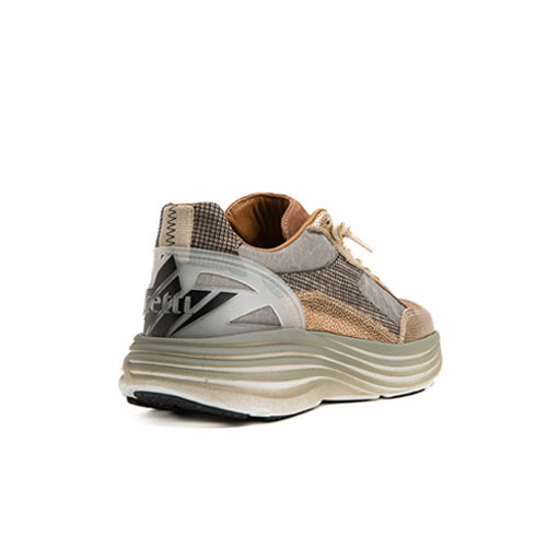Deportiva con cordones de la marca Cetti. Fabricada con piezas de corte en piel y tejido técnico en color bronce. Adorno y contrafuerte en tejido técnico estampado. Detalle de marca situada en la parte trasera del modelo. Piso volumen. Cierre mediante cordones elásticos. Forro textil. Plantilla acolchada y extraíble. Suela de goma.